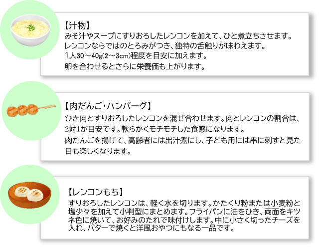 レンコンは、いくつかの穴が開いていることから「見通しがきく」「先が見通せる」と言われ、縁起のよい野菜とされています。秋から冬にかけて旬を迎えます。魅力たっぷりのレンコン料理、家族みんなで味わってくださいね。