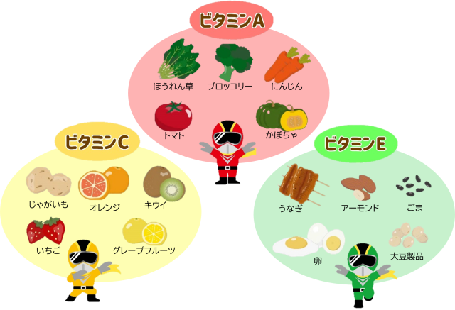 アレルギー症状を悪化させる原因の一つといわれているのが活性酸素です。物質を酸化させる力がとても強い酸素で、体を守る働きもありますが、増えすぎてしまうと免疫機能が低下し、アレルギー症状を悪化させてしまいます。そんな活性酸素の過剰な発生や働きを防止するために、抗酸化作用が強いビタミンA、C、Eの多い食品を意識して食べてくださいね。