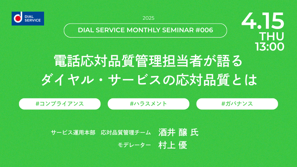 ダイヤル・サービスでは、このたび、相談員の応対品質向上に取り組む当社社員をゲストにセミナーを開催いたします。